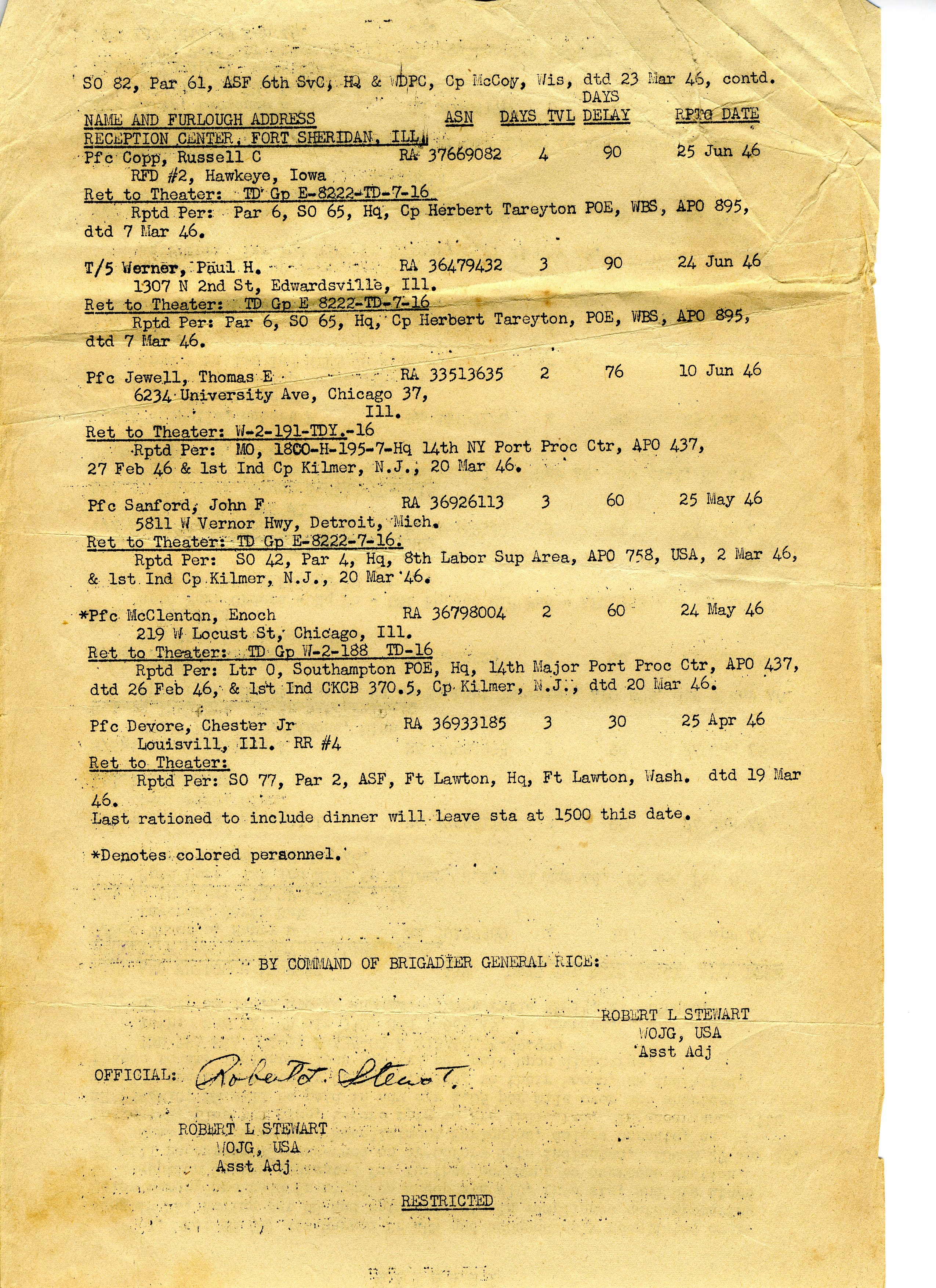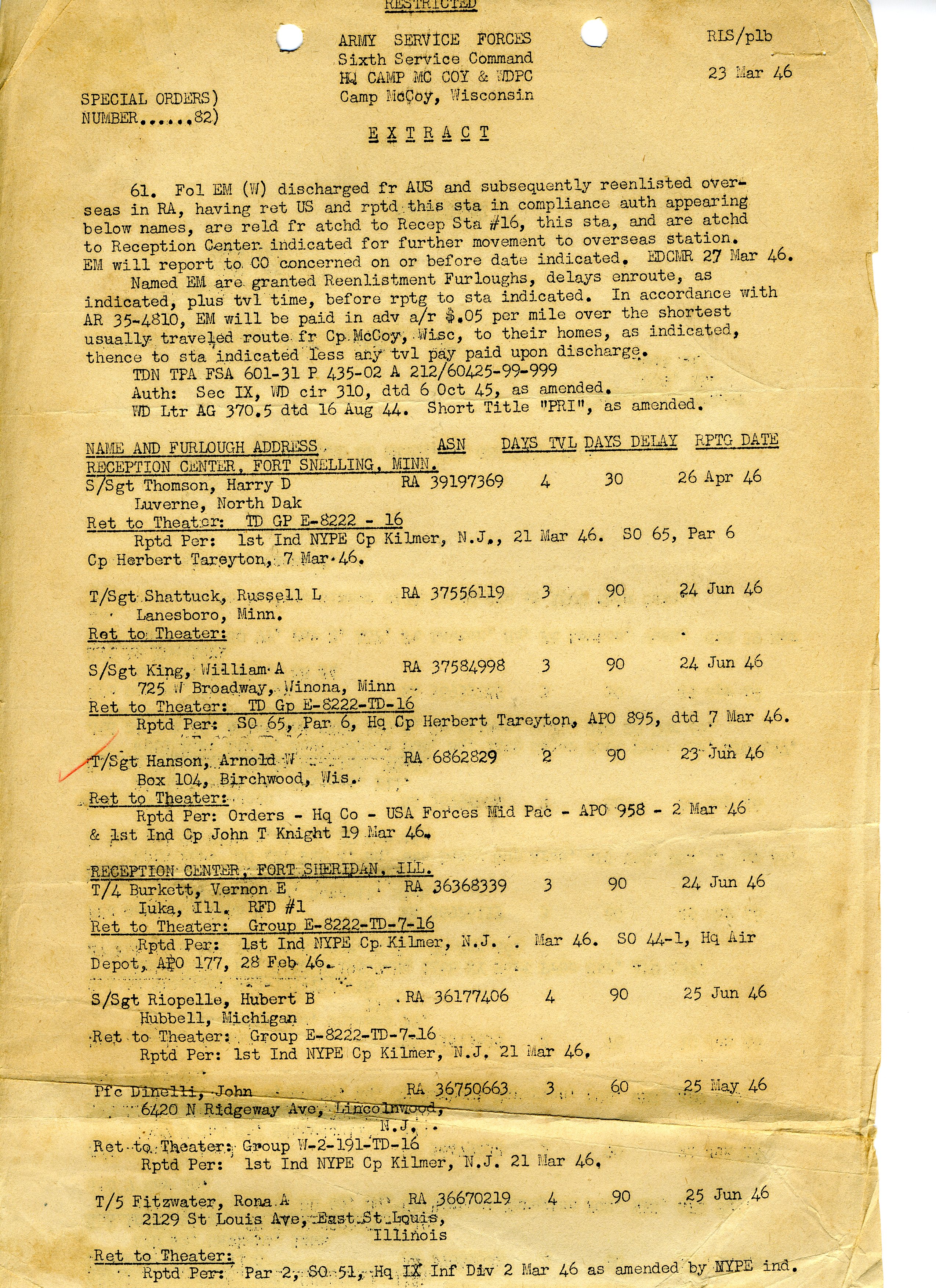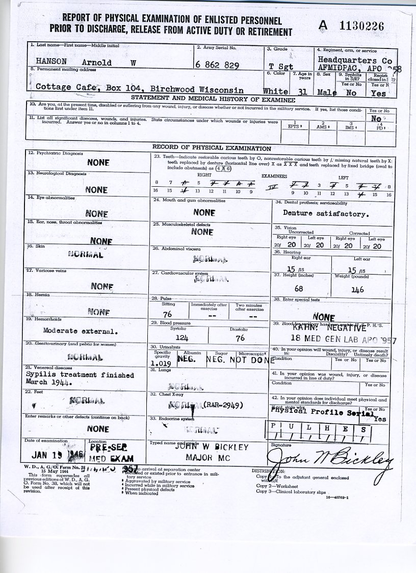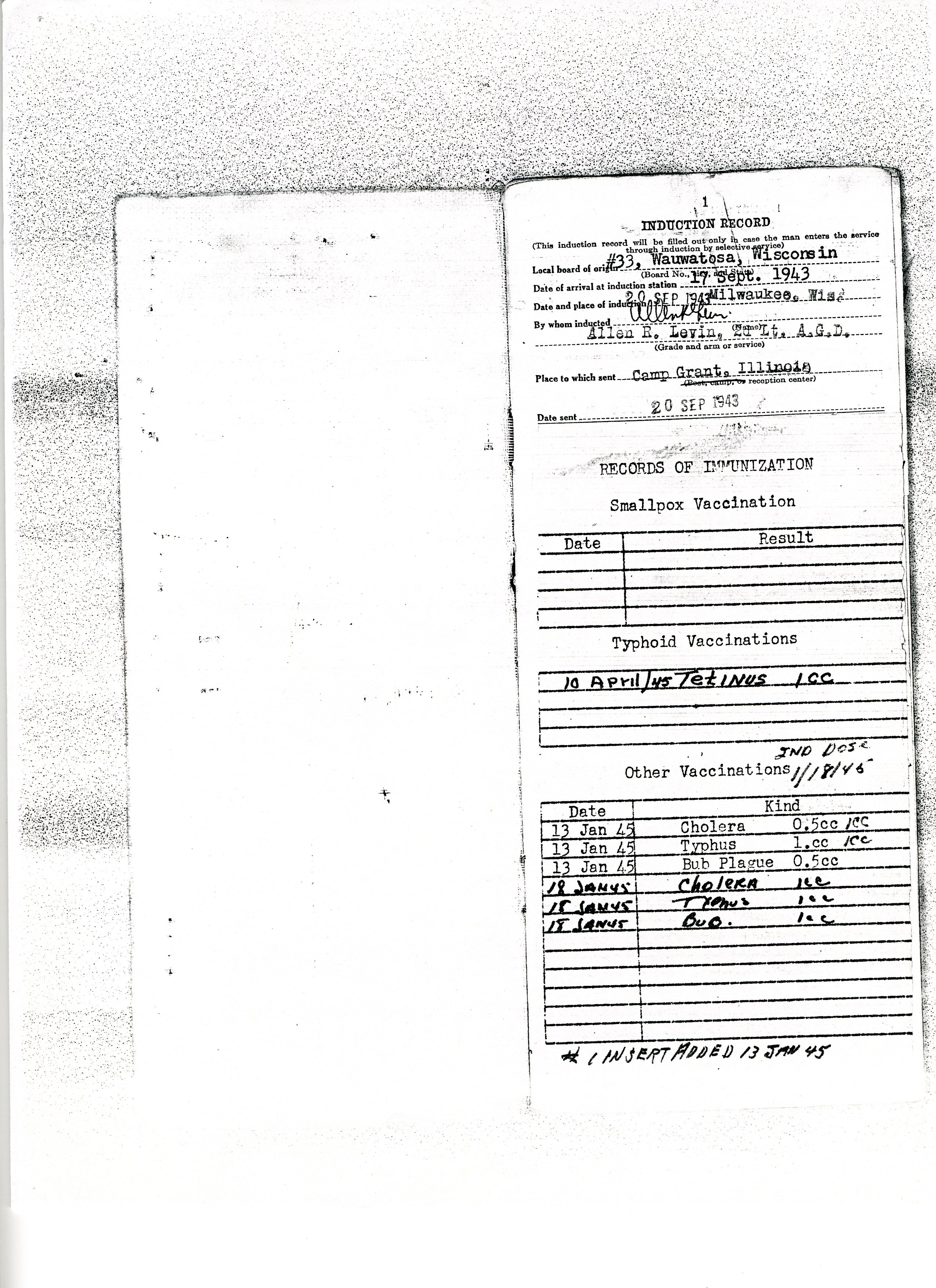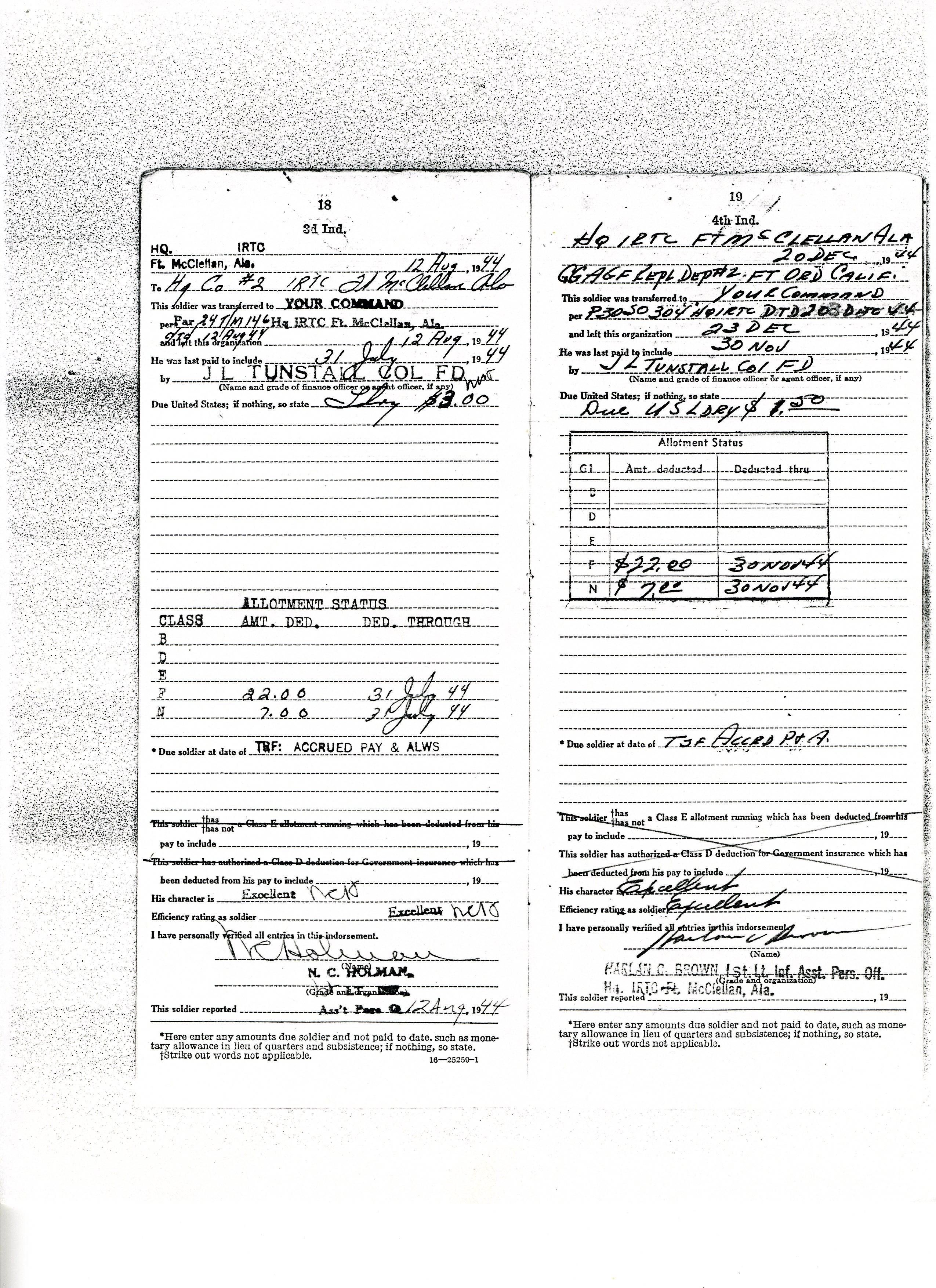 20 September 1943 - 20 January 1946: US Army Service Record