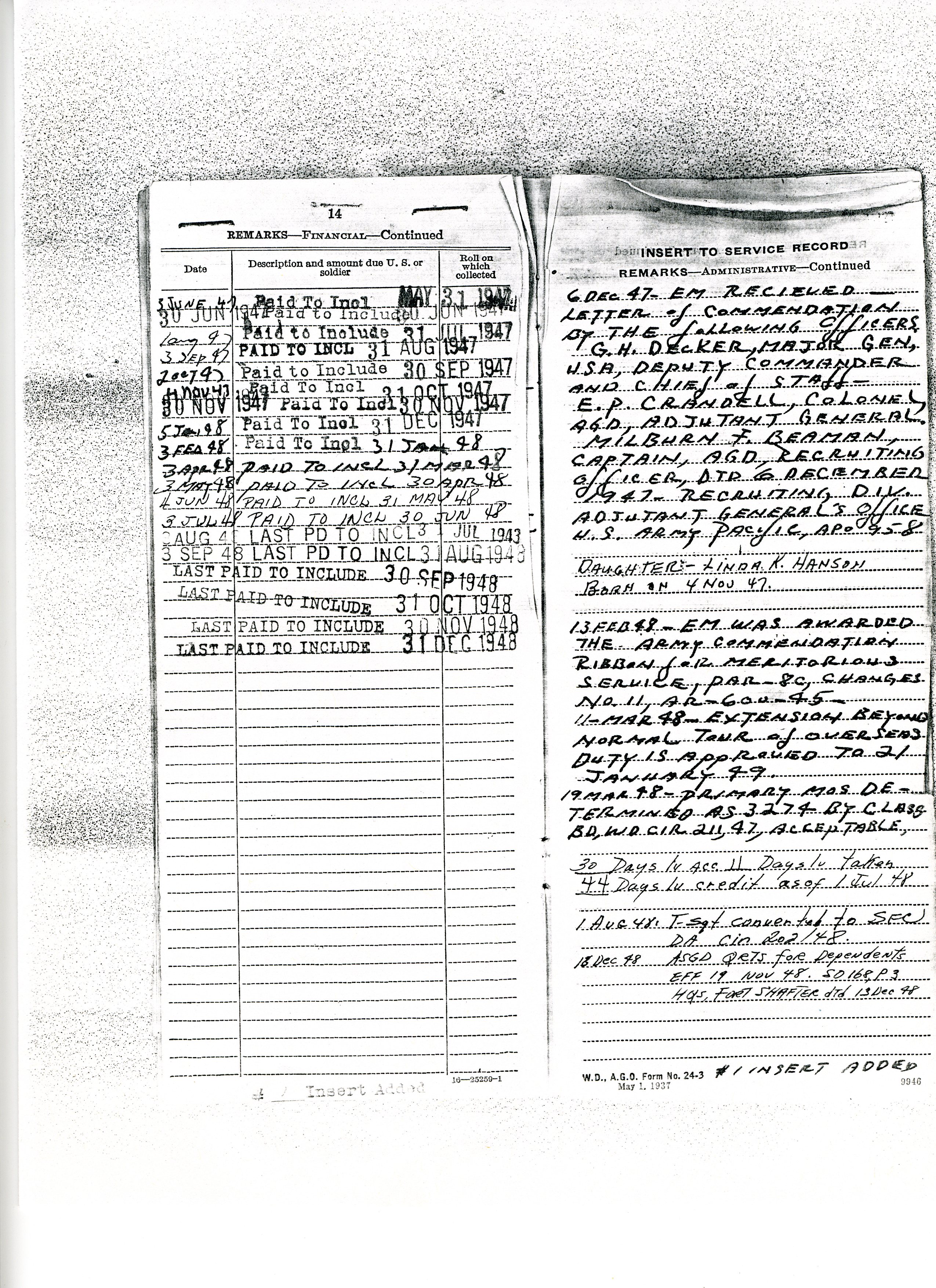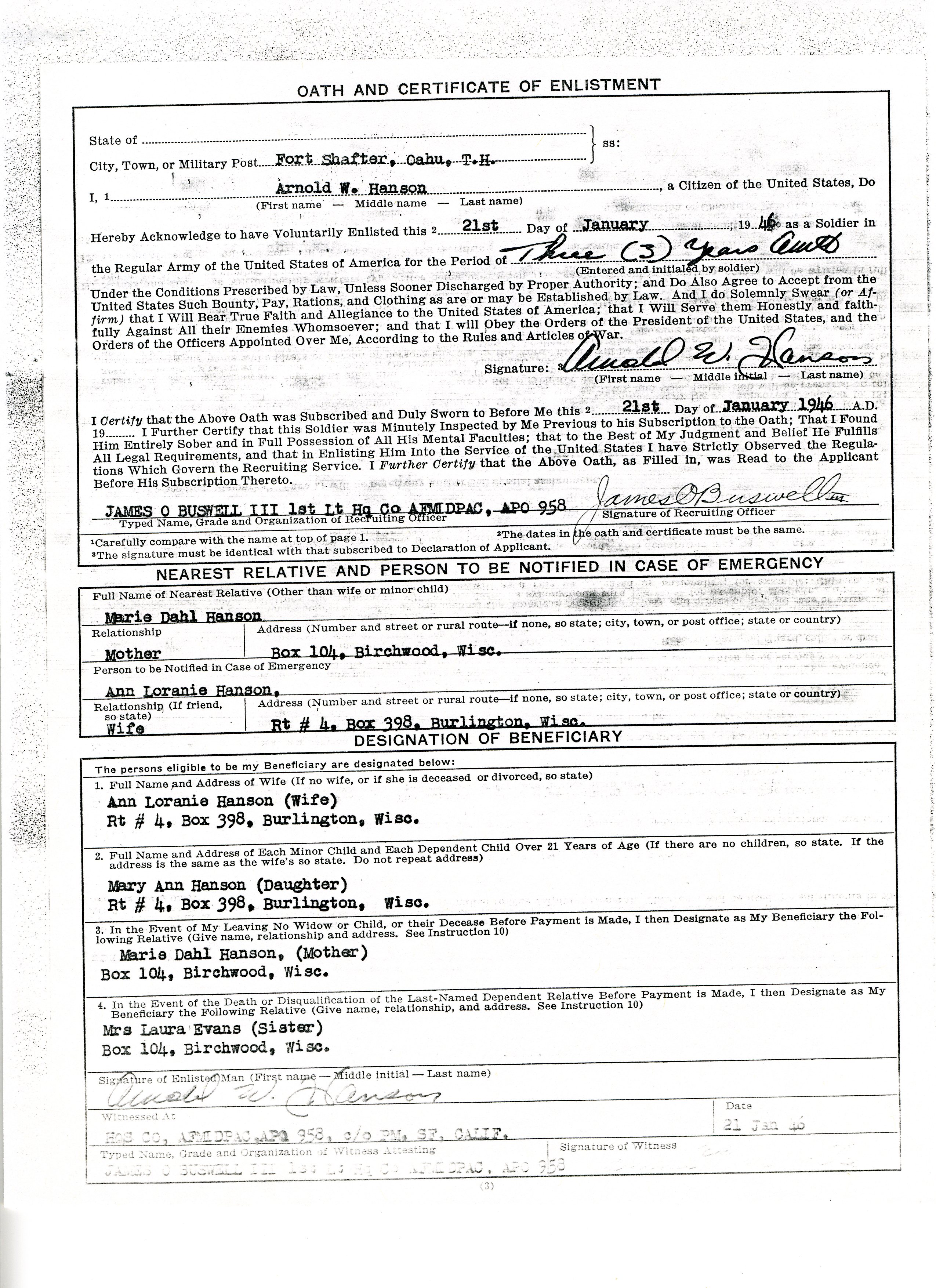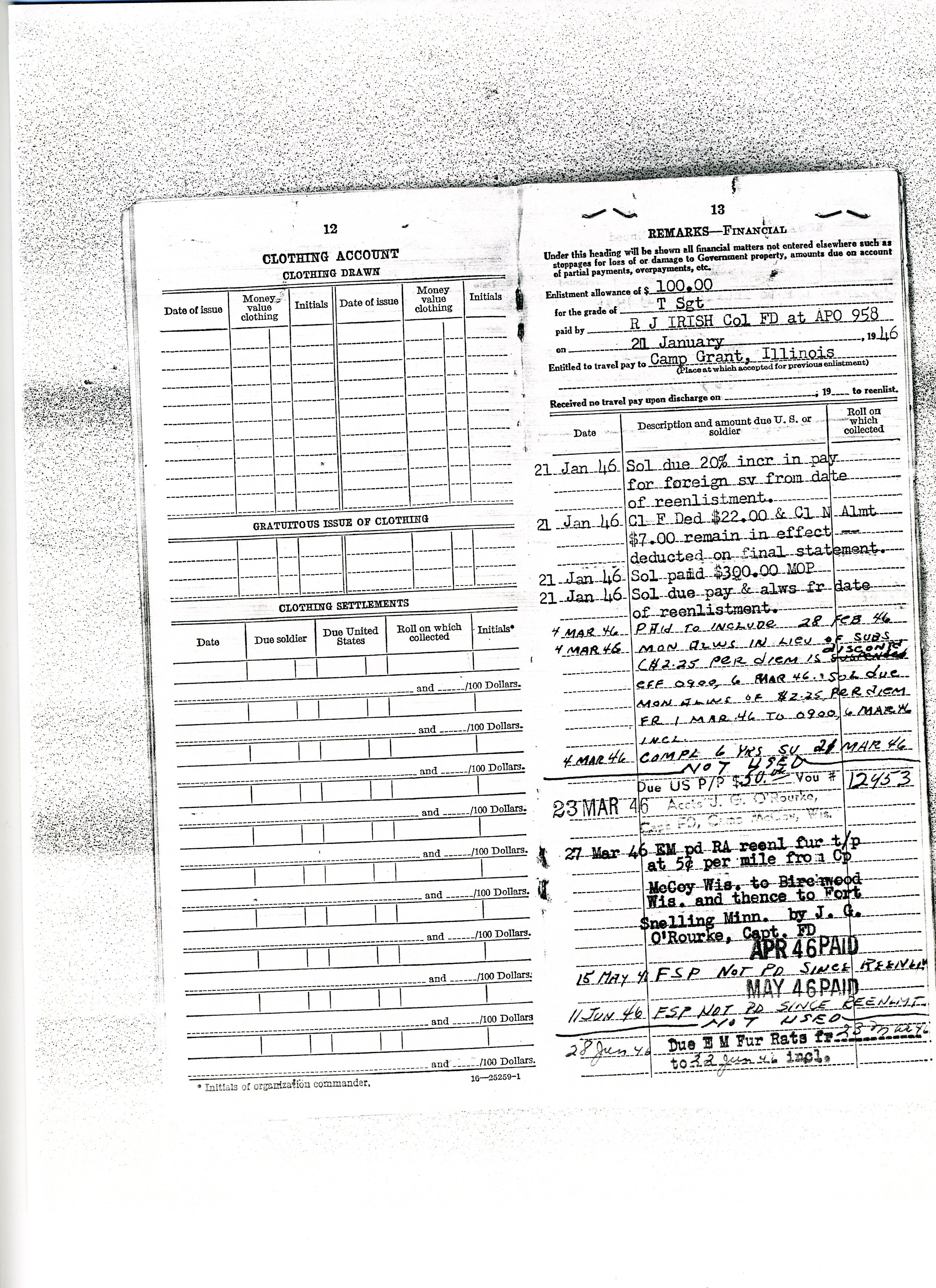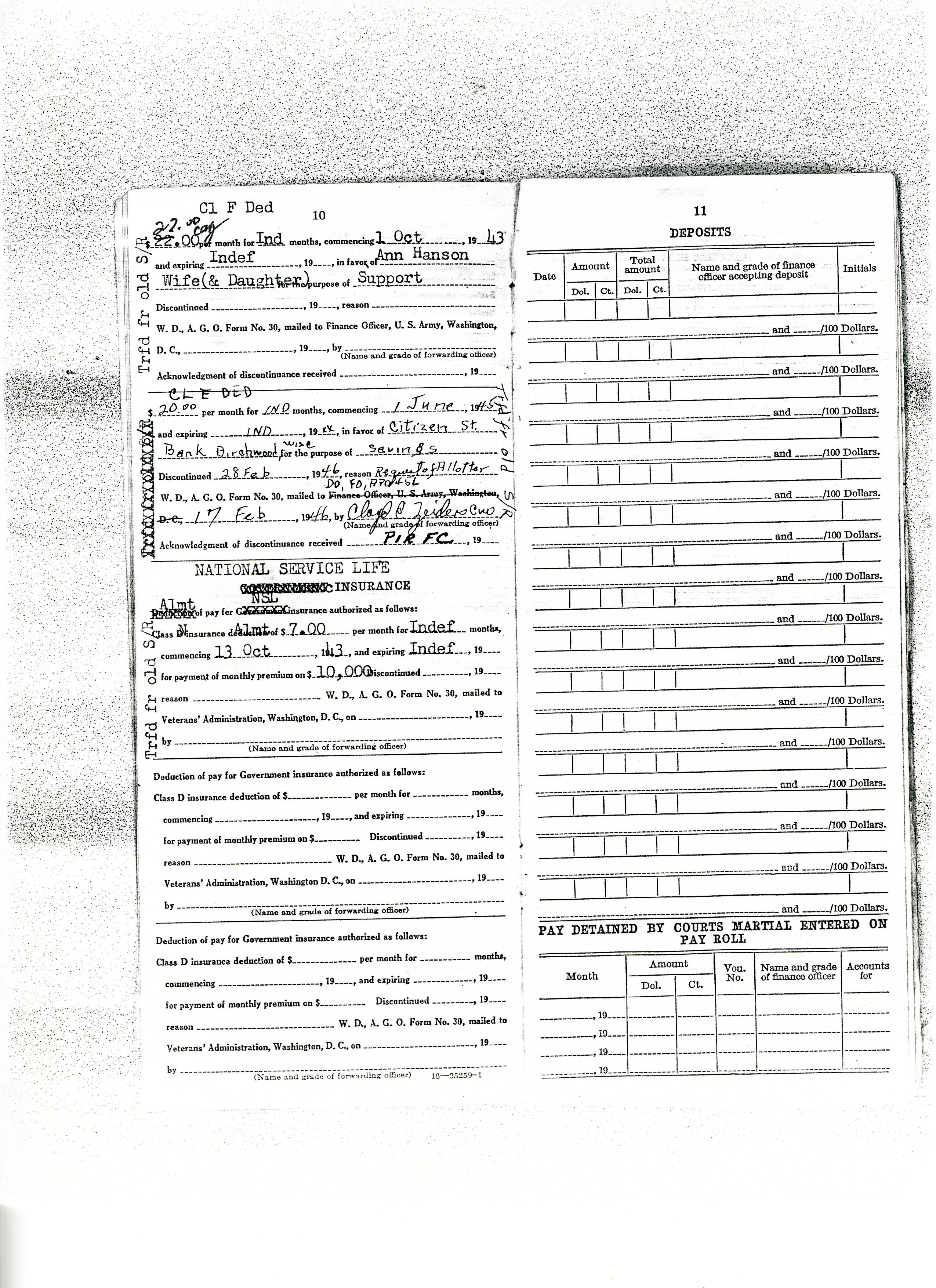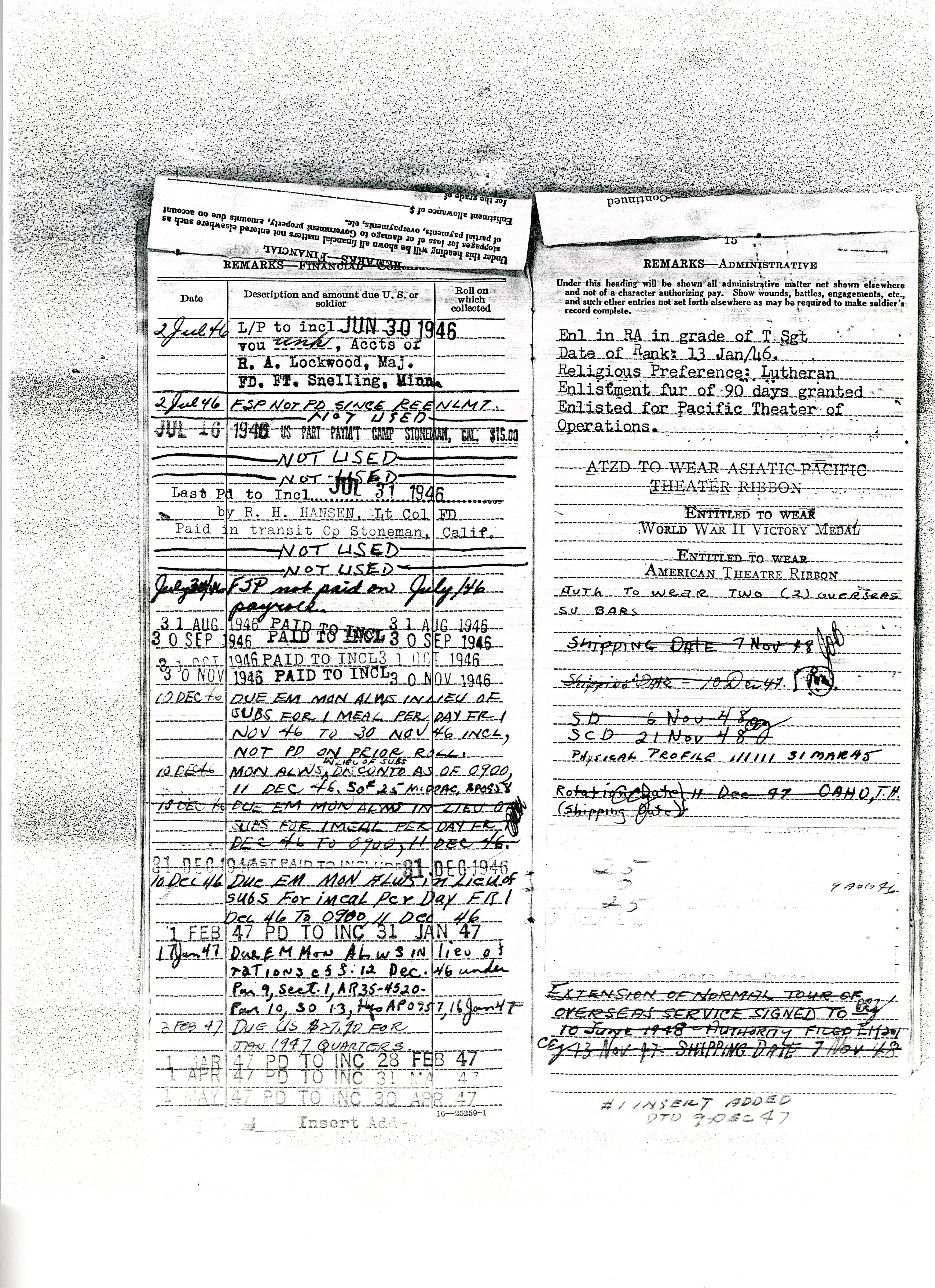 20 September 1943 - 20 January 1946: US Army Service Record