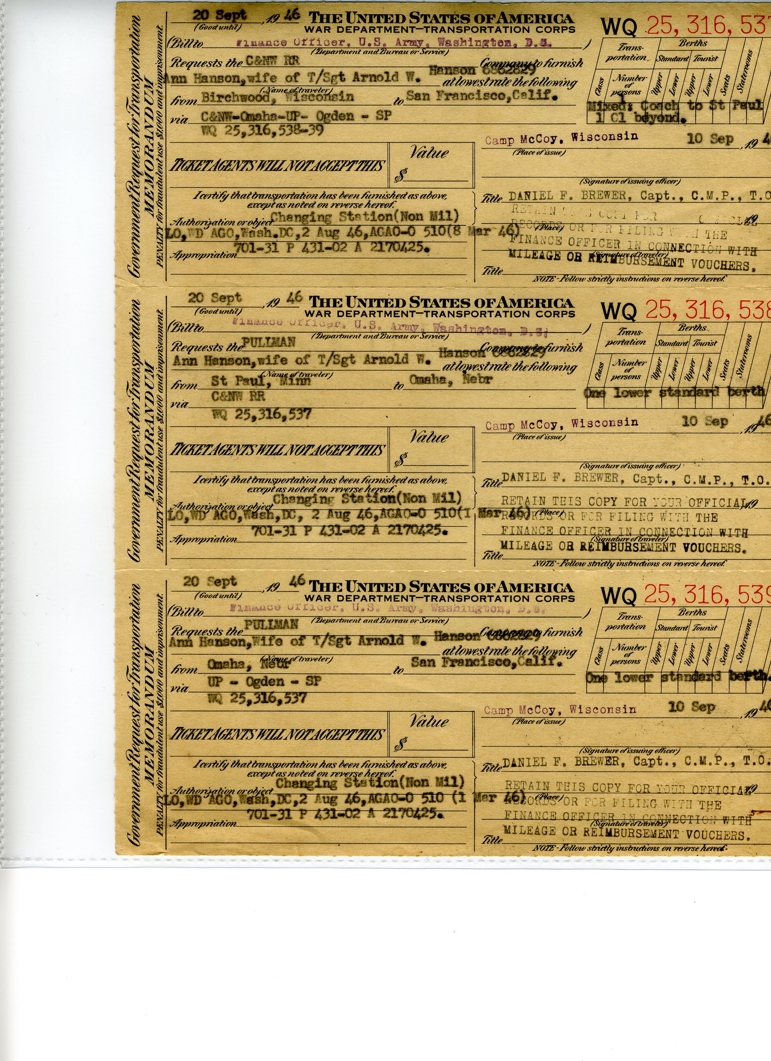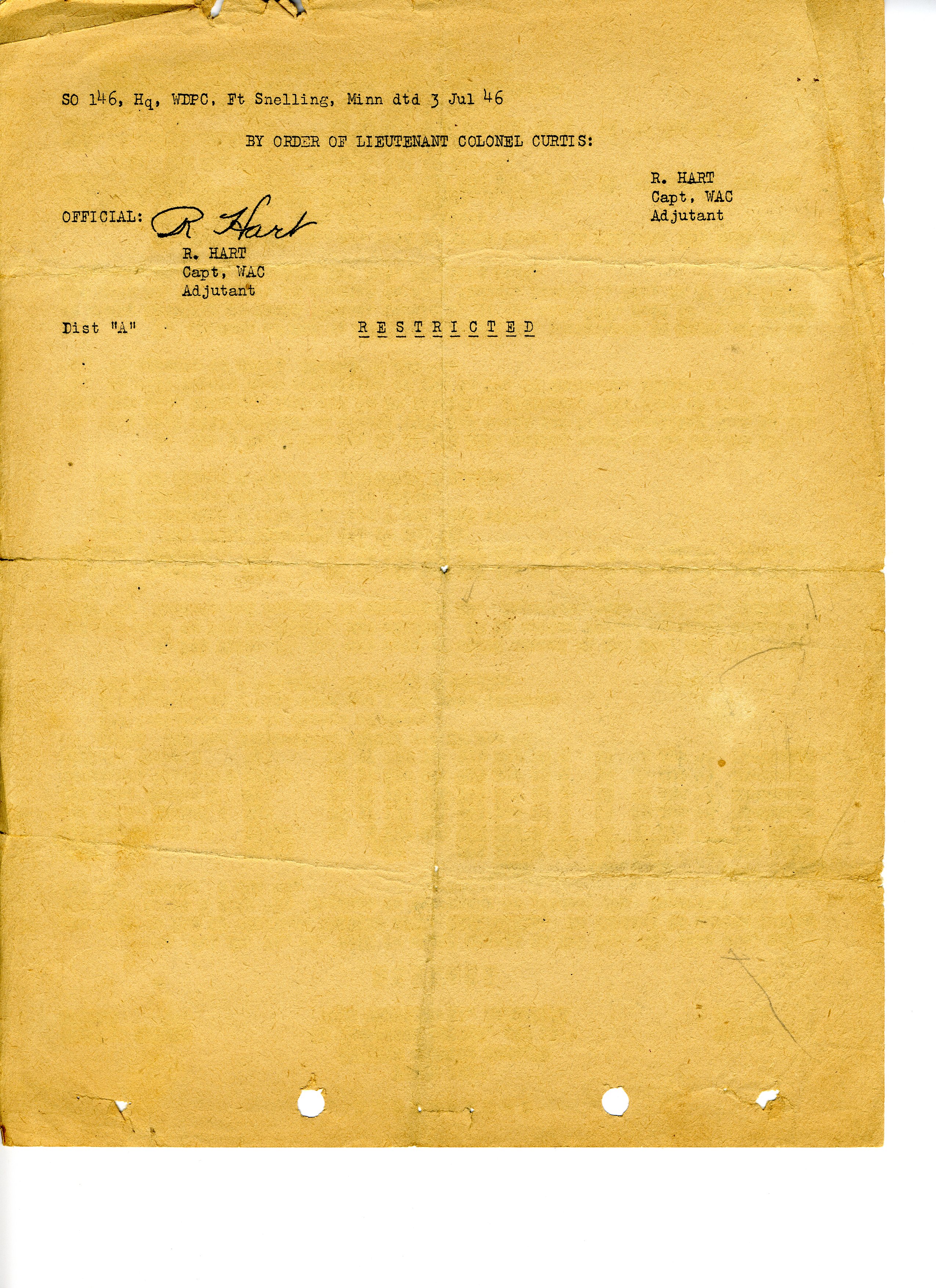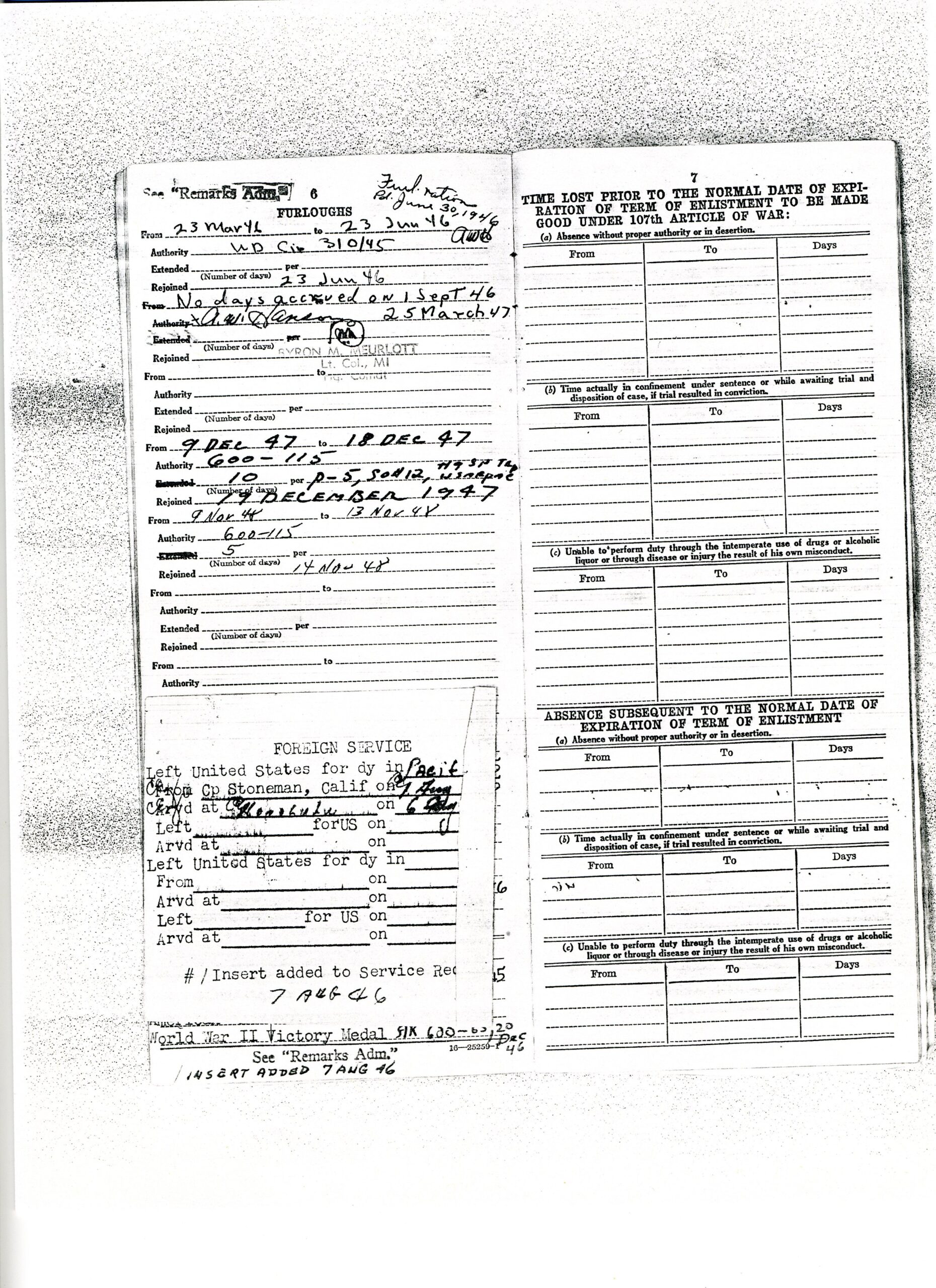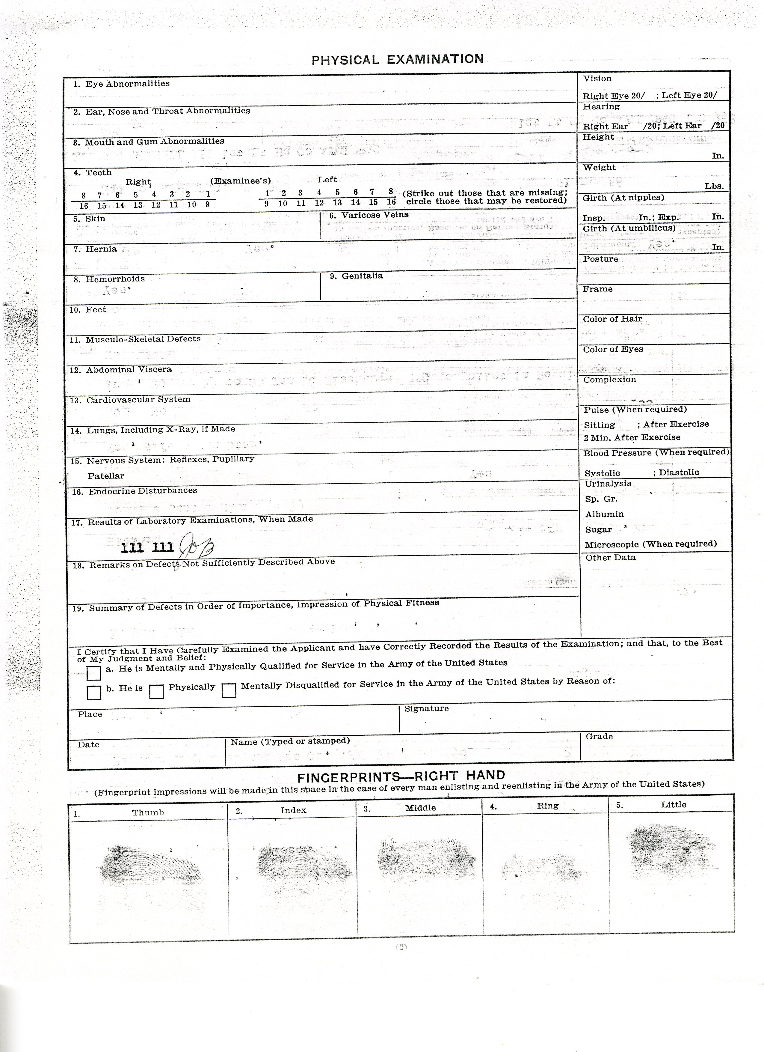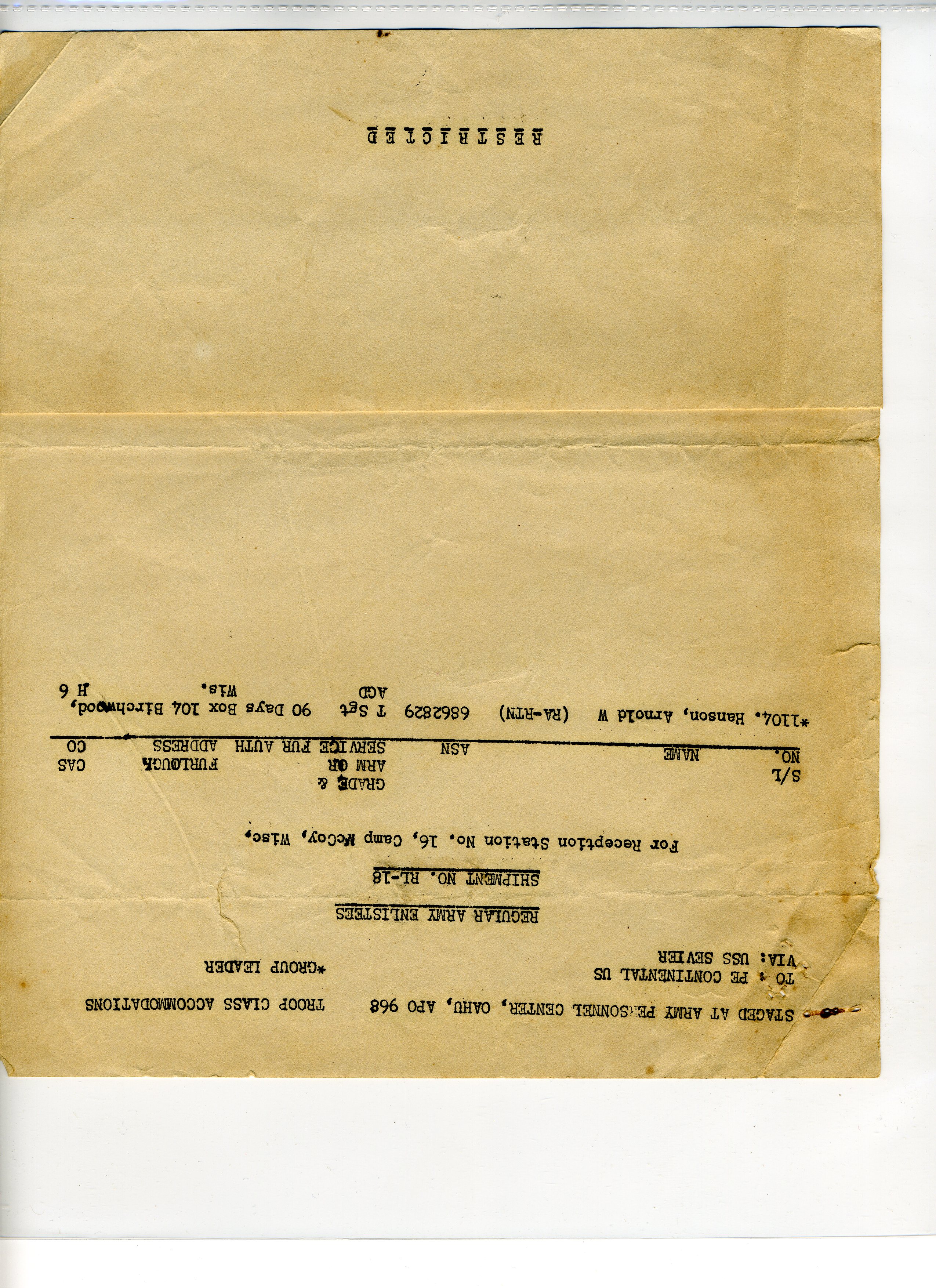 20 September 1943 - 20 January 1946: US Army Service Record