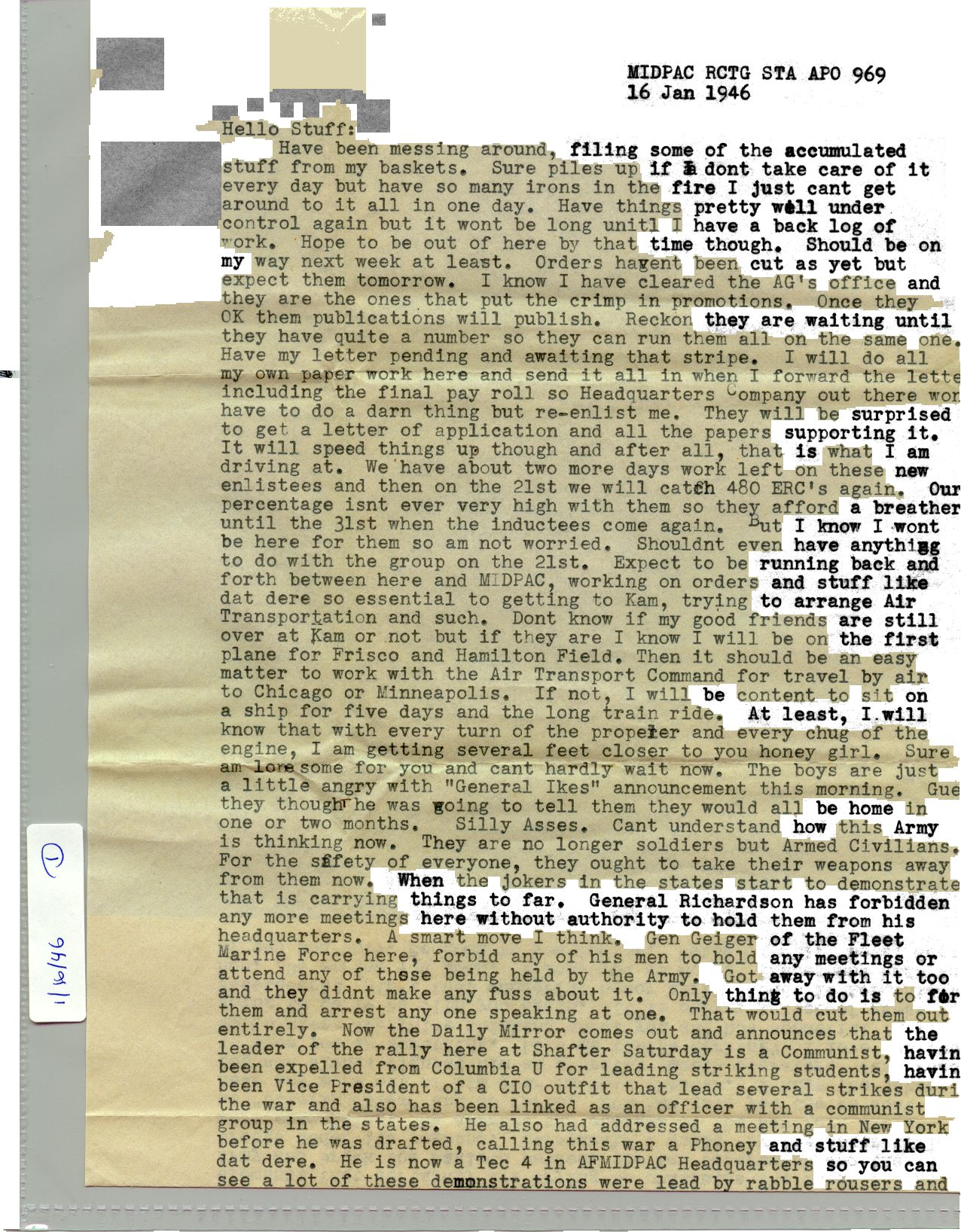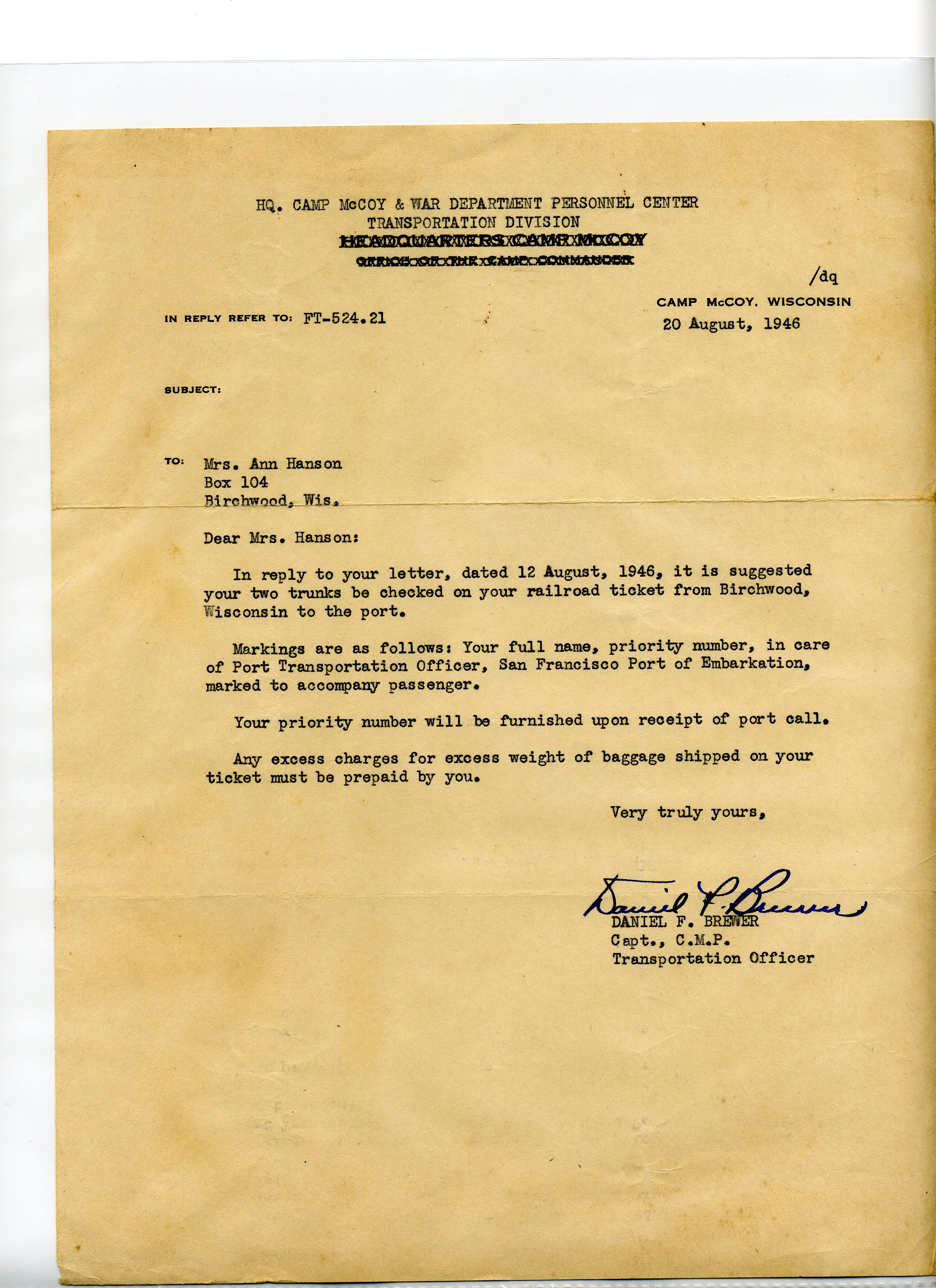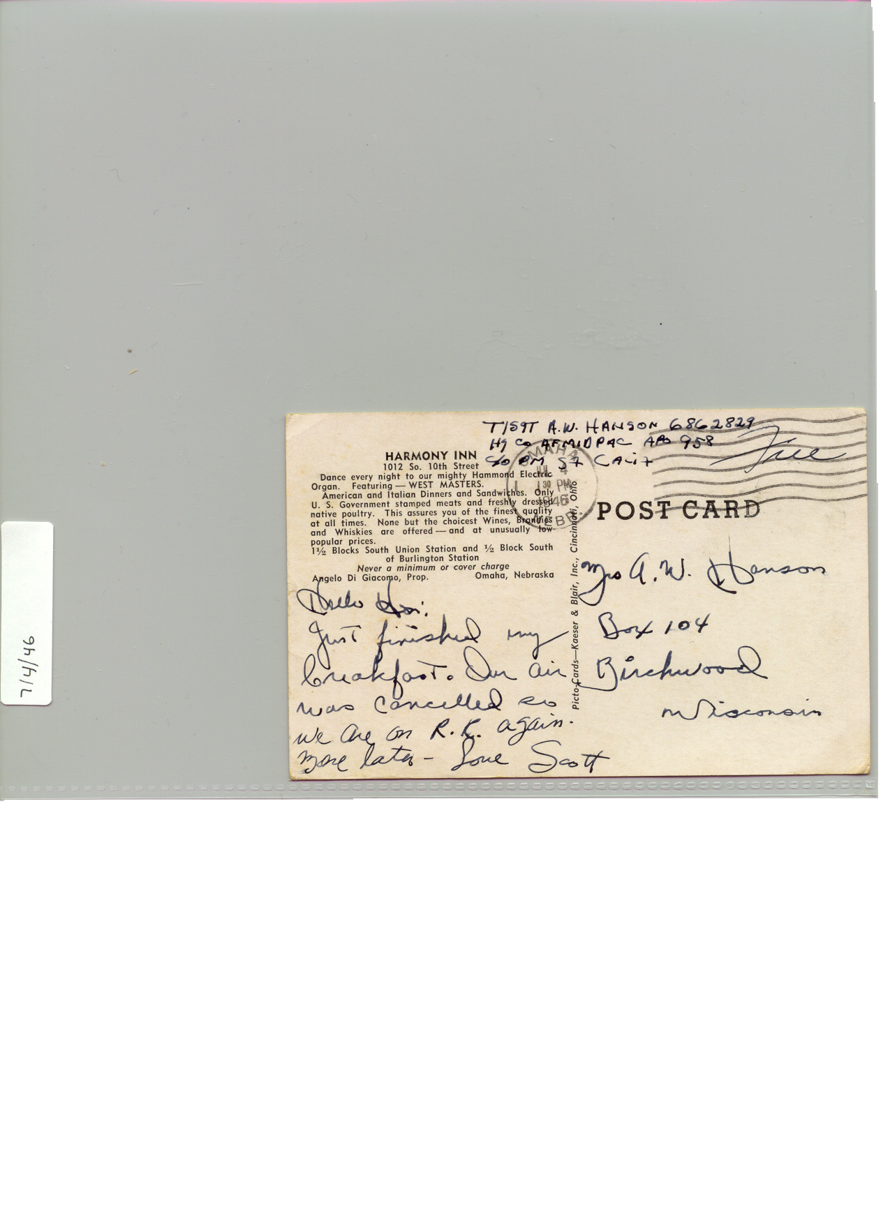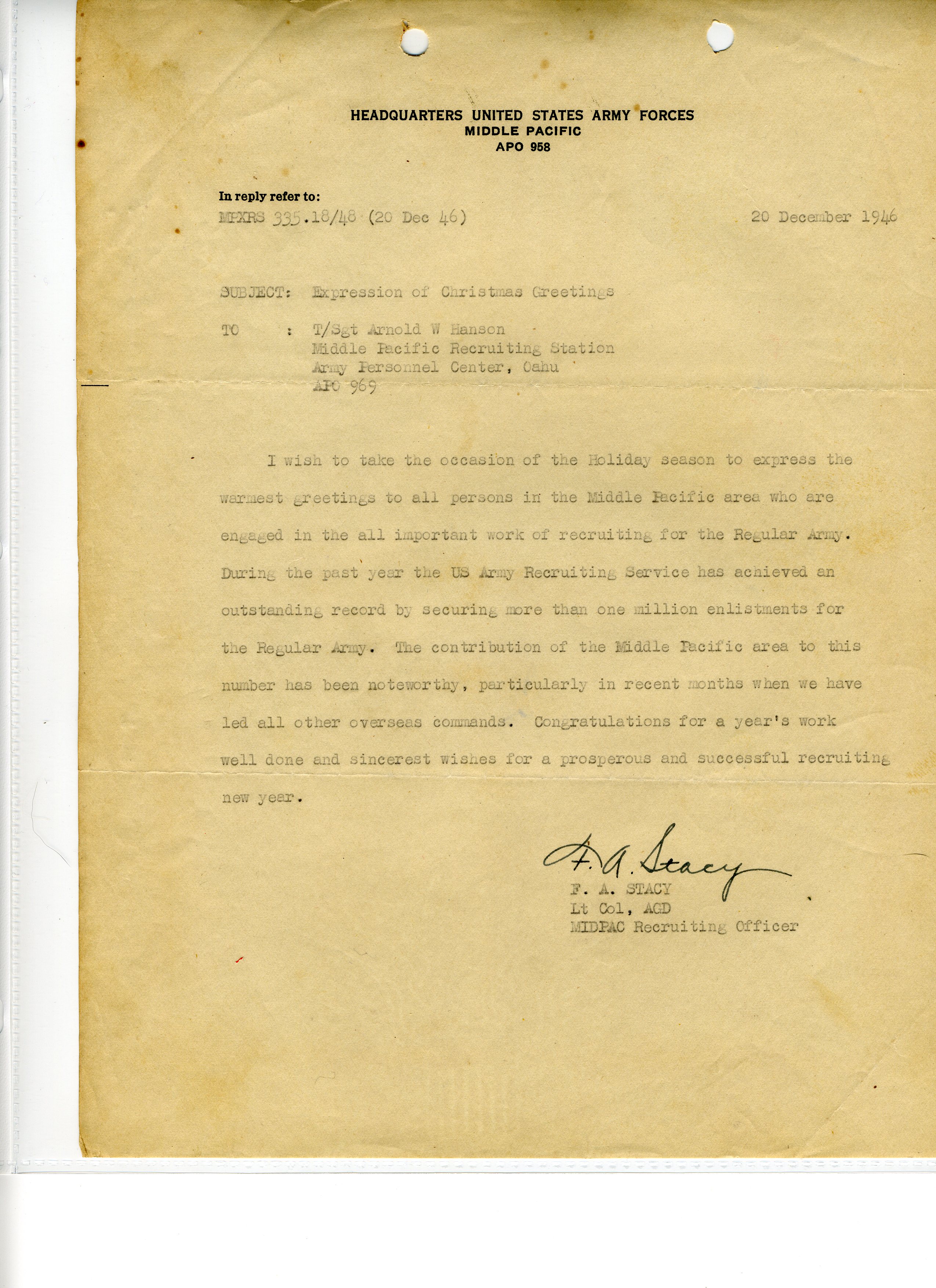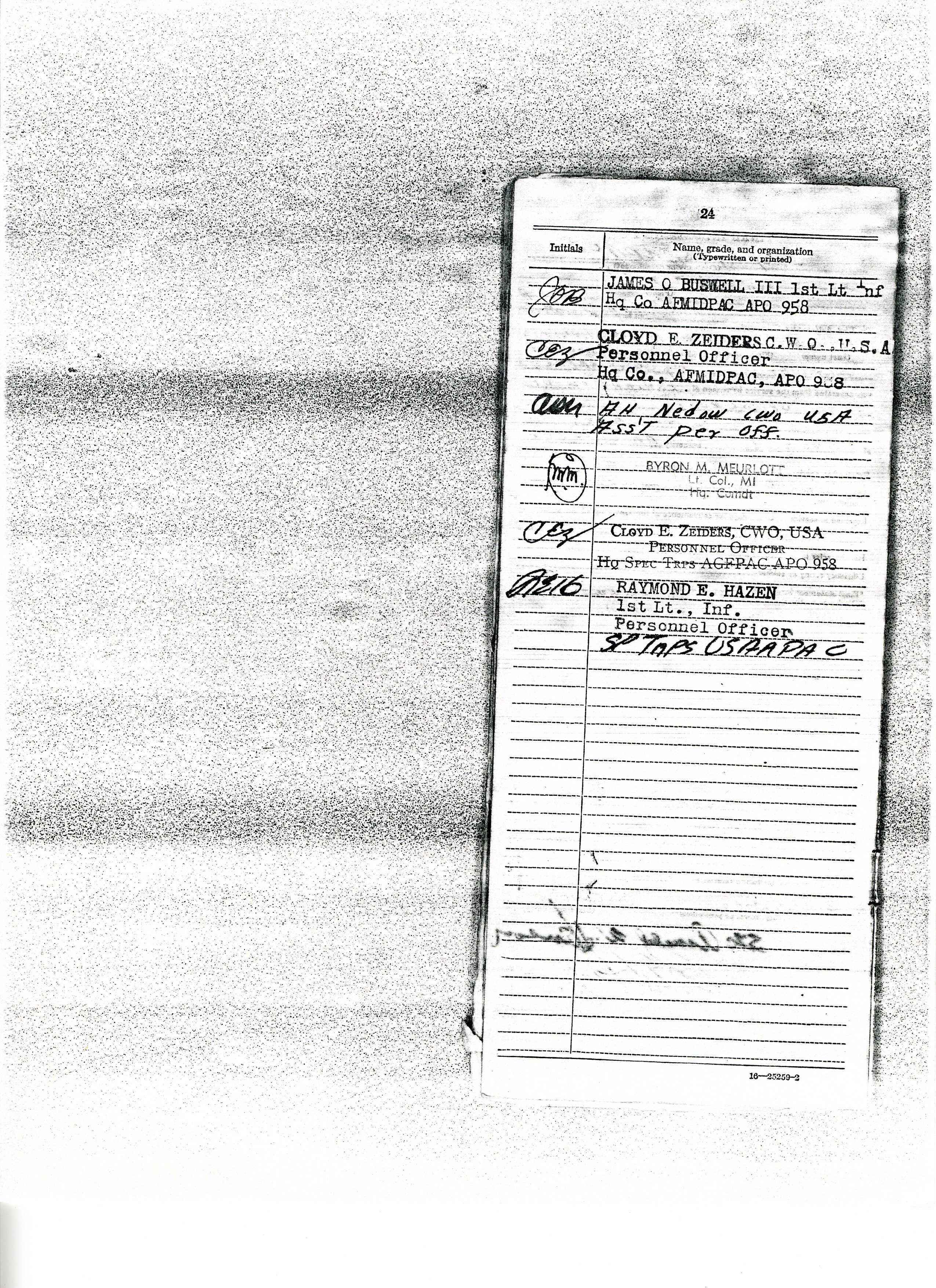 20 September 1943 - 20 January 1946: US Army Service Record