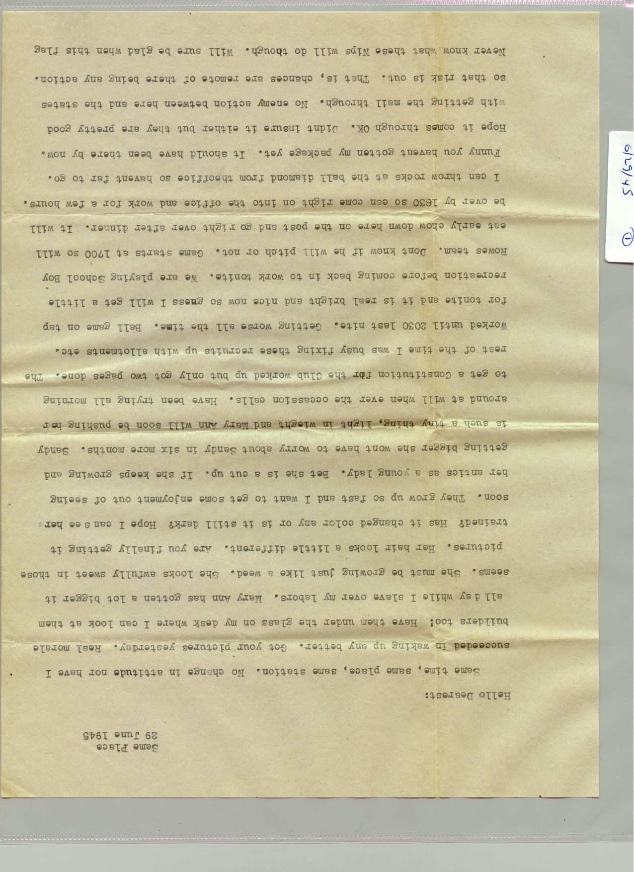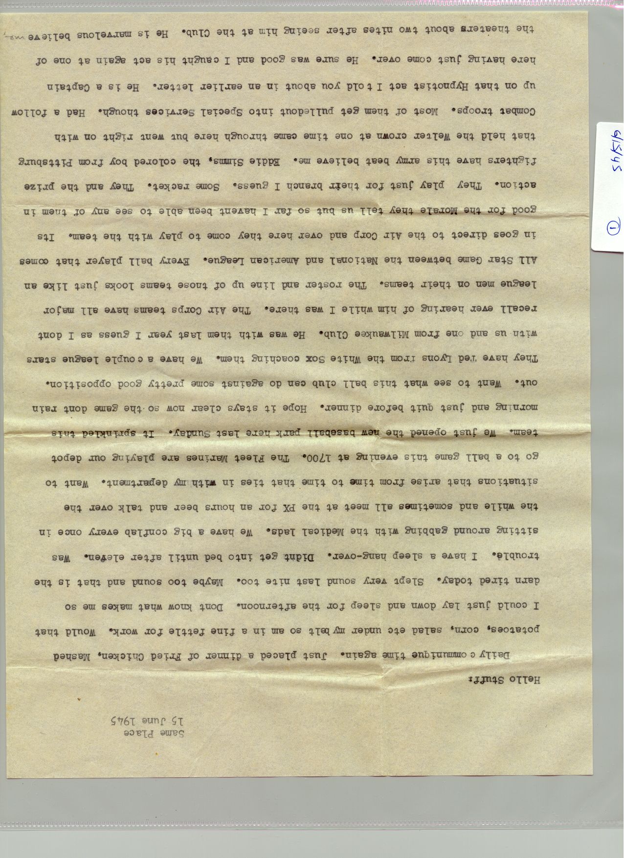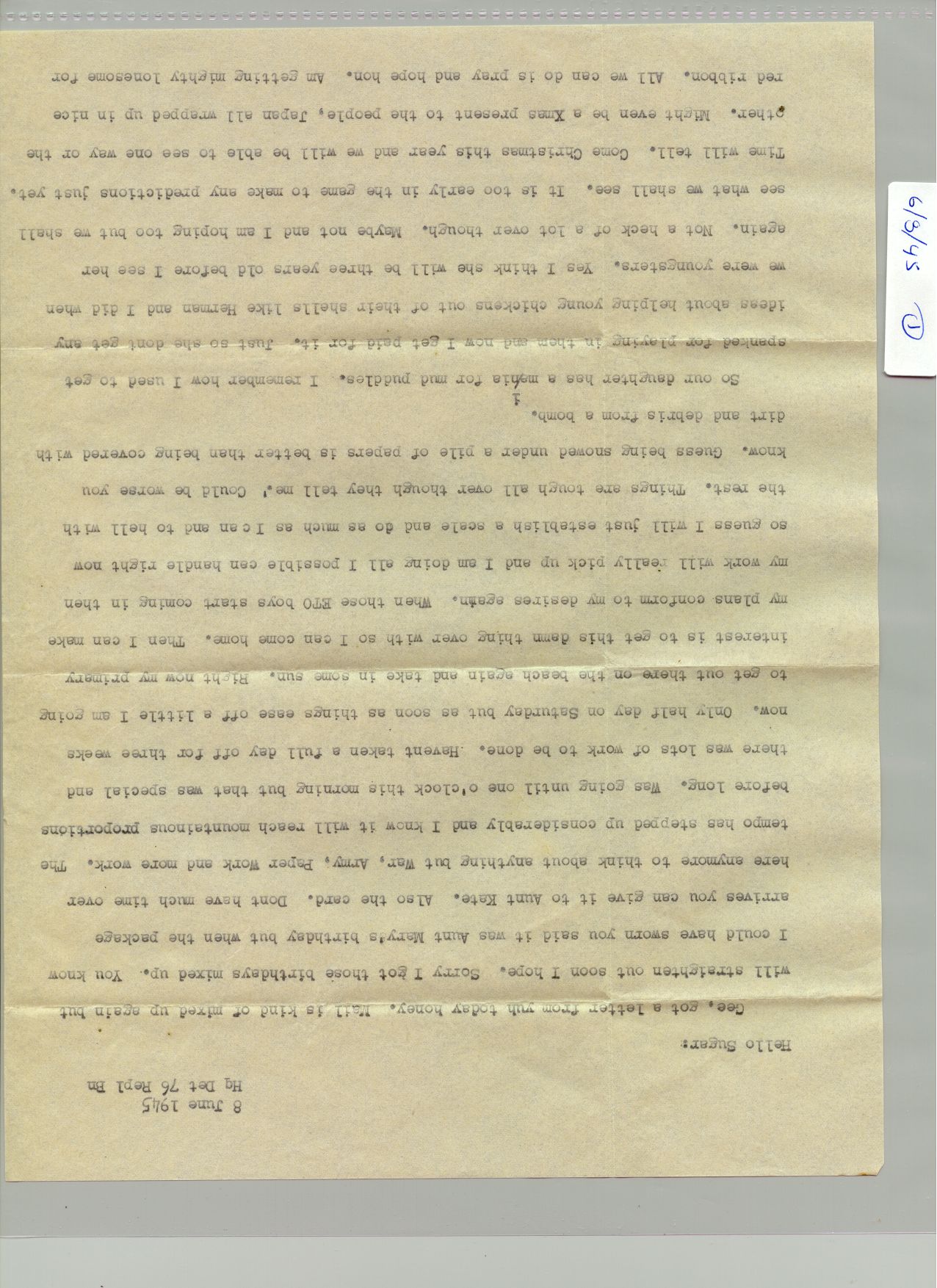 1 June 1945 - 30 Juen 1945