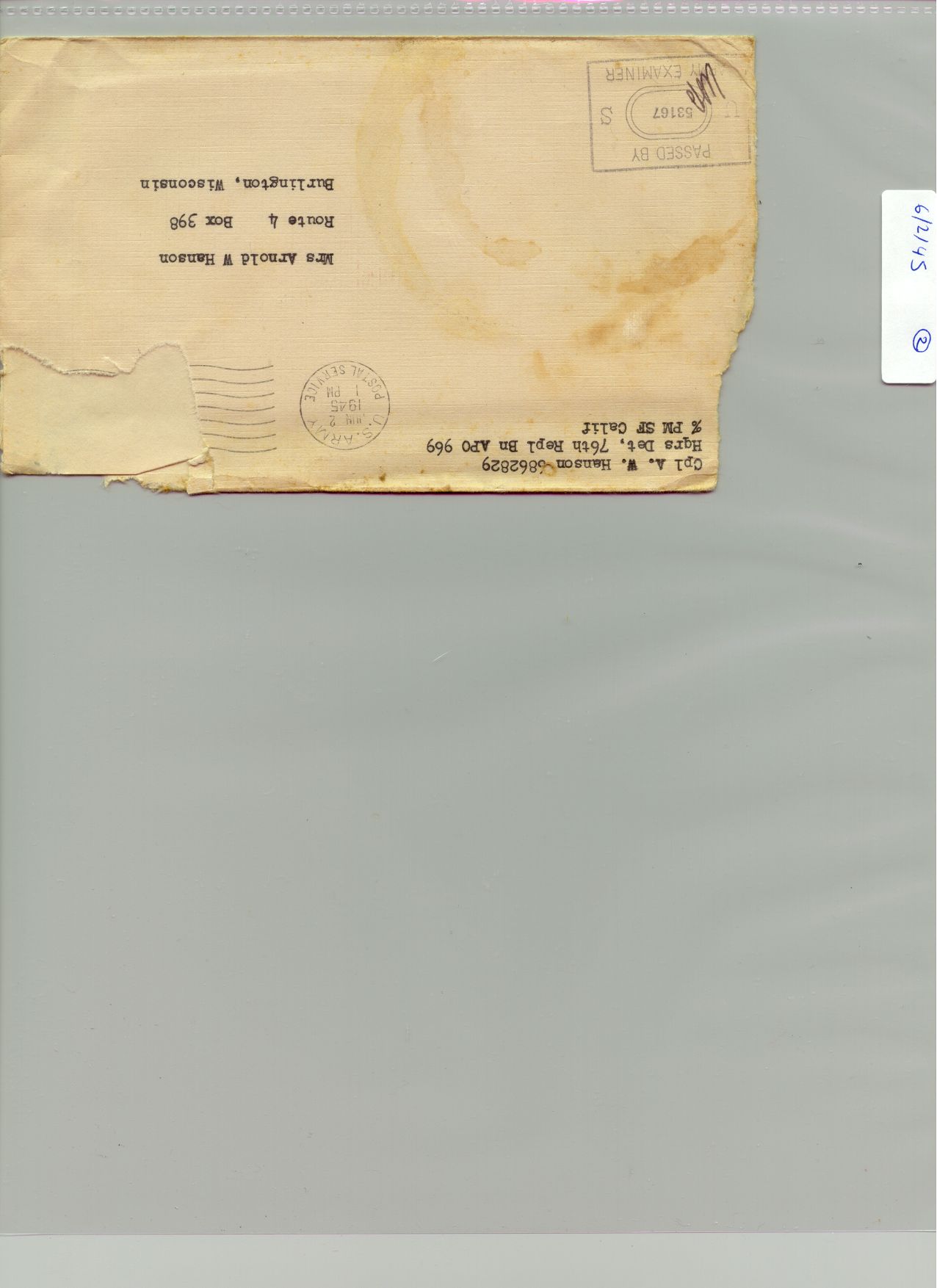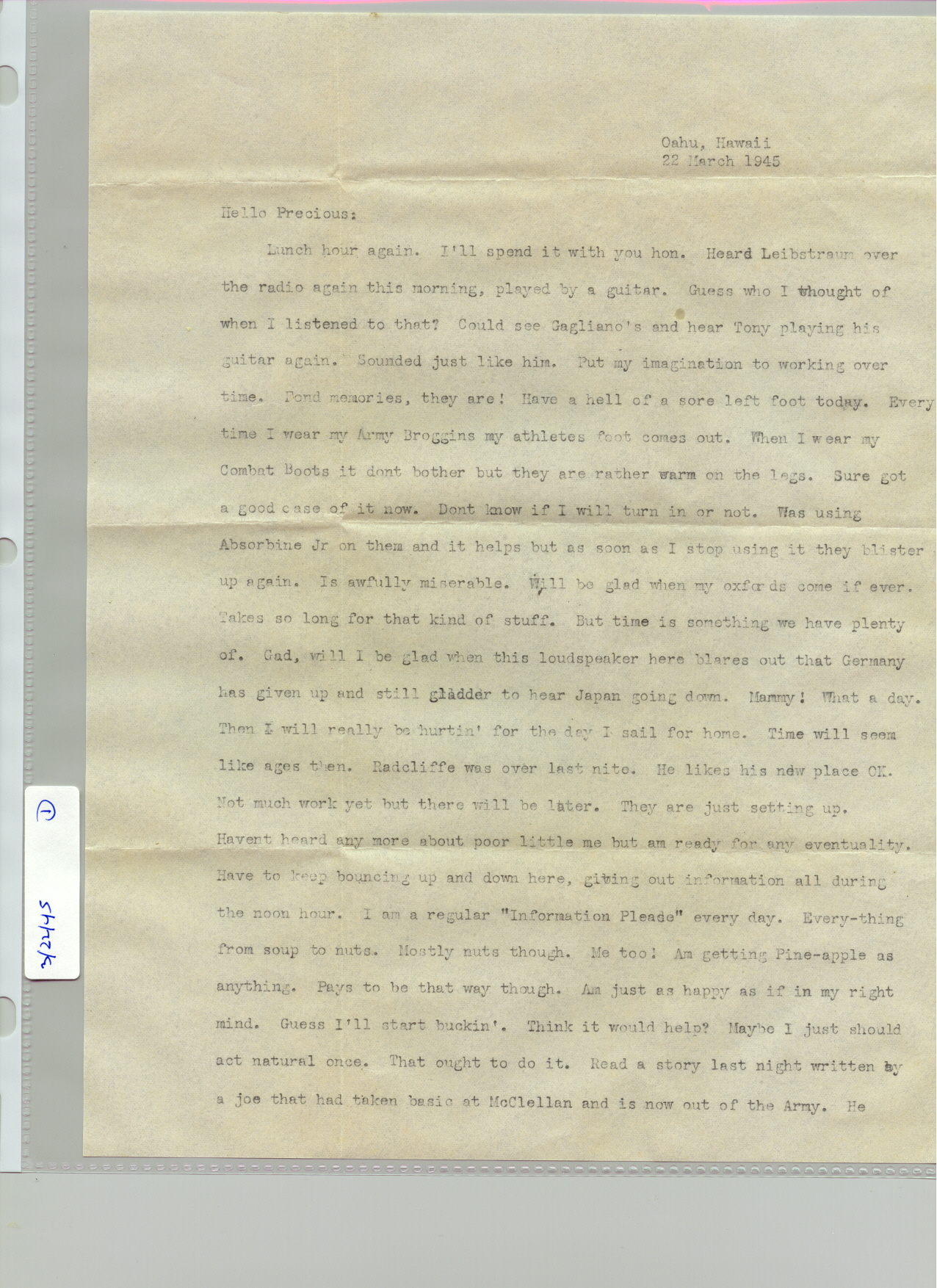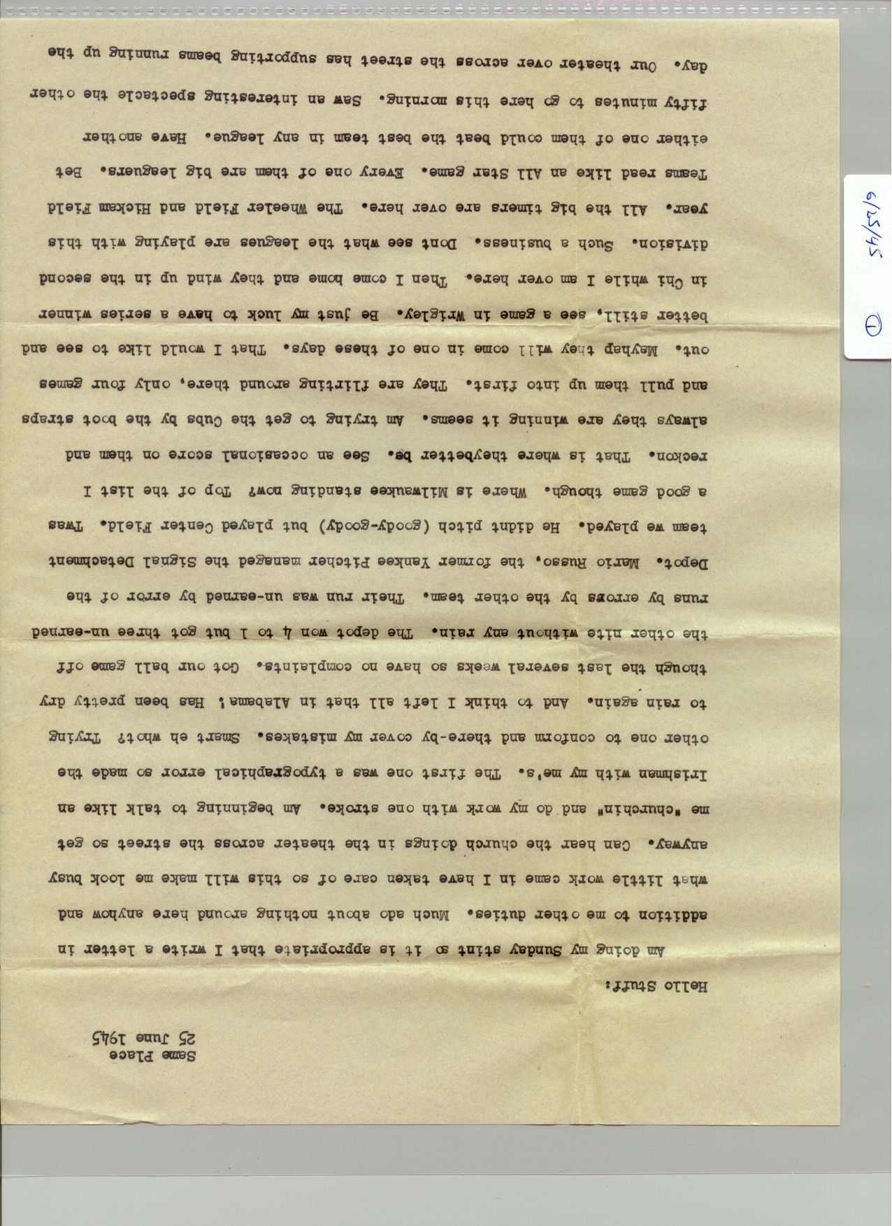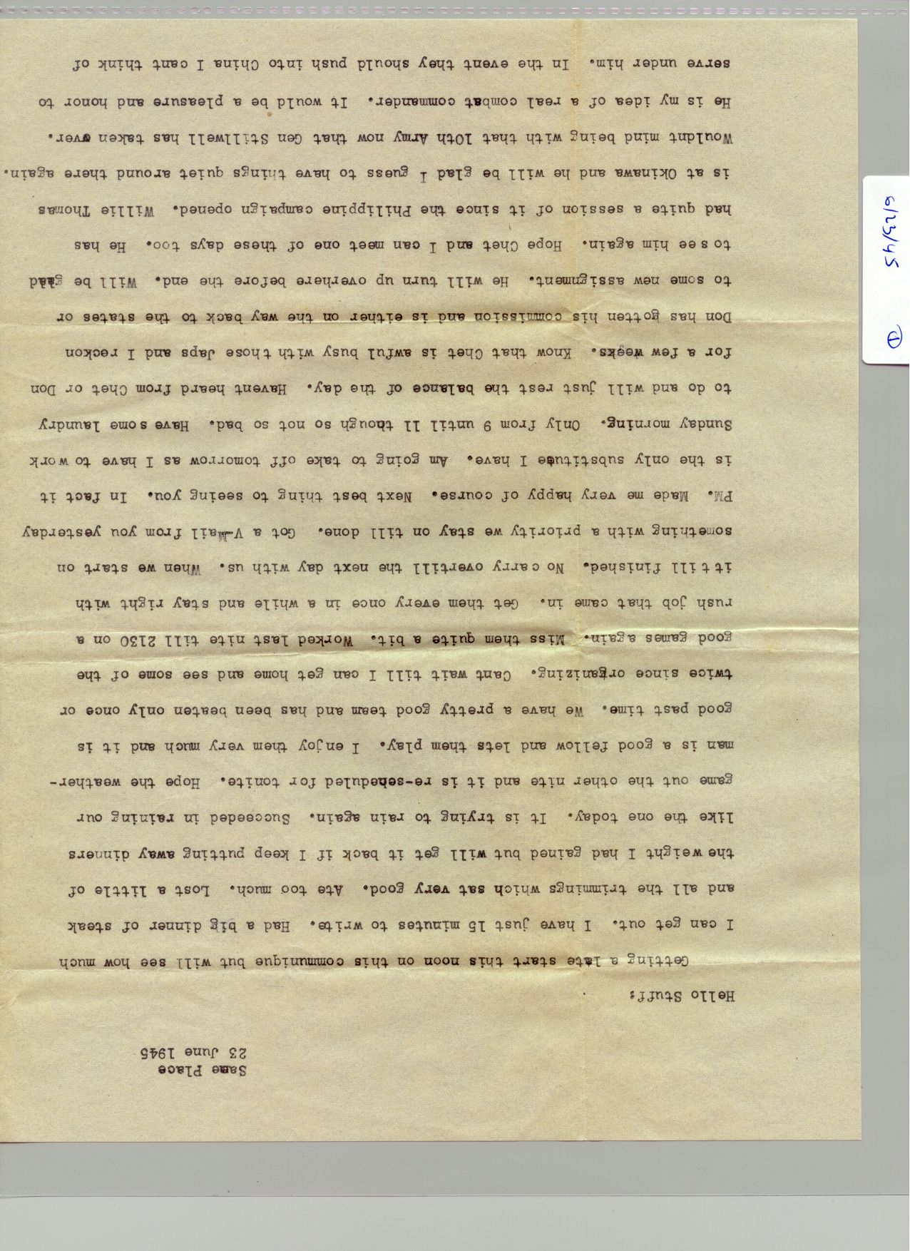 1 June 1945 - 30 Juen 1945