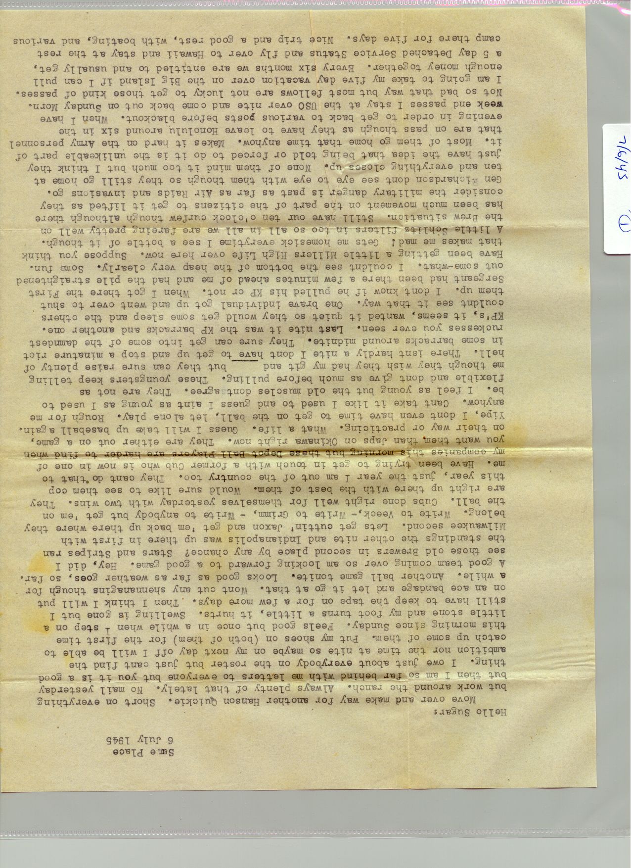 1 July 1945 - 31 July 1945
