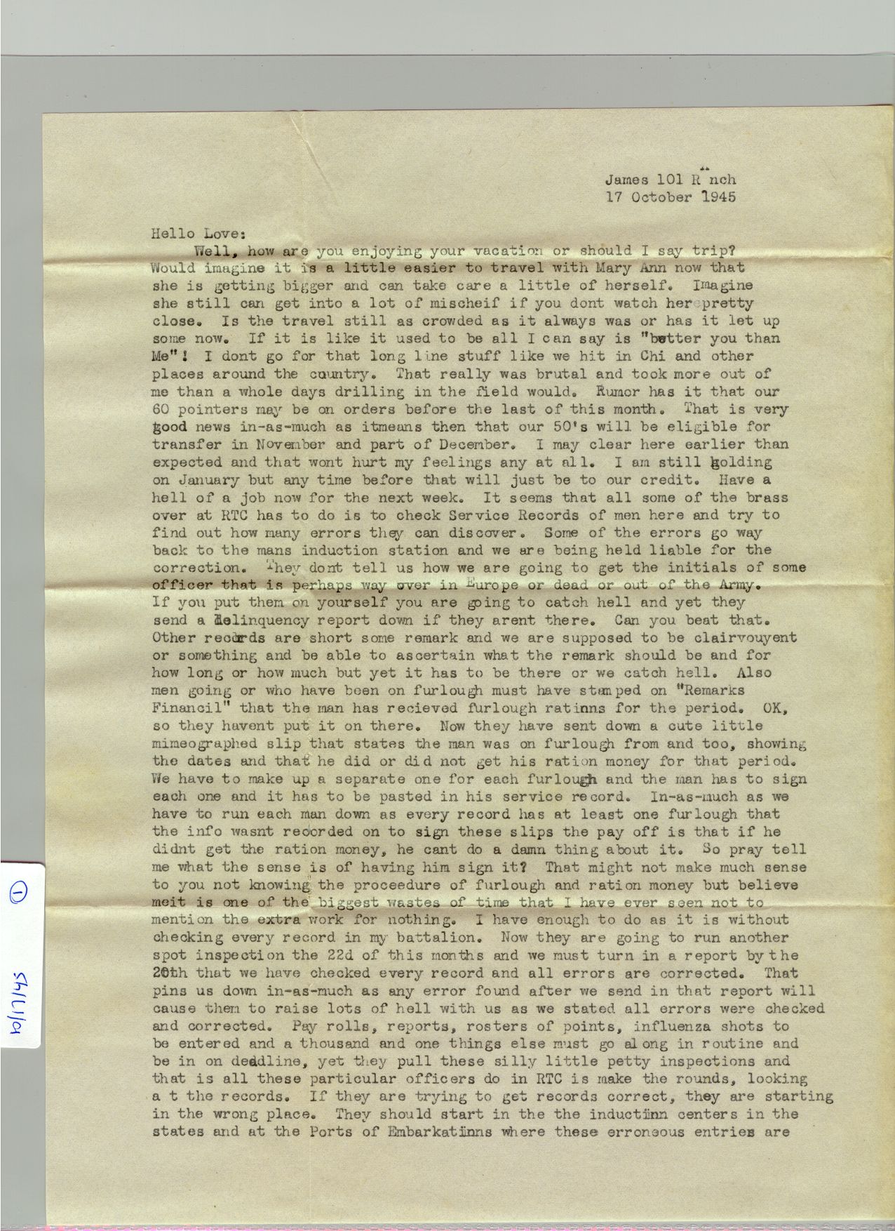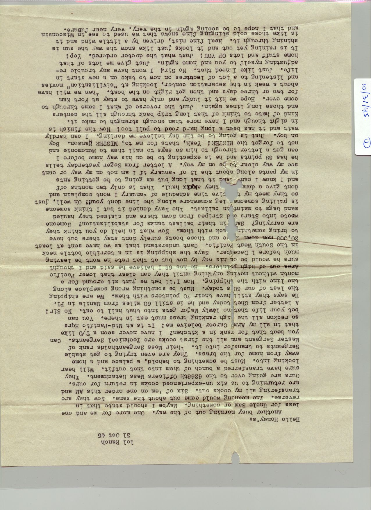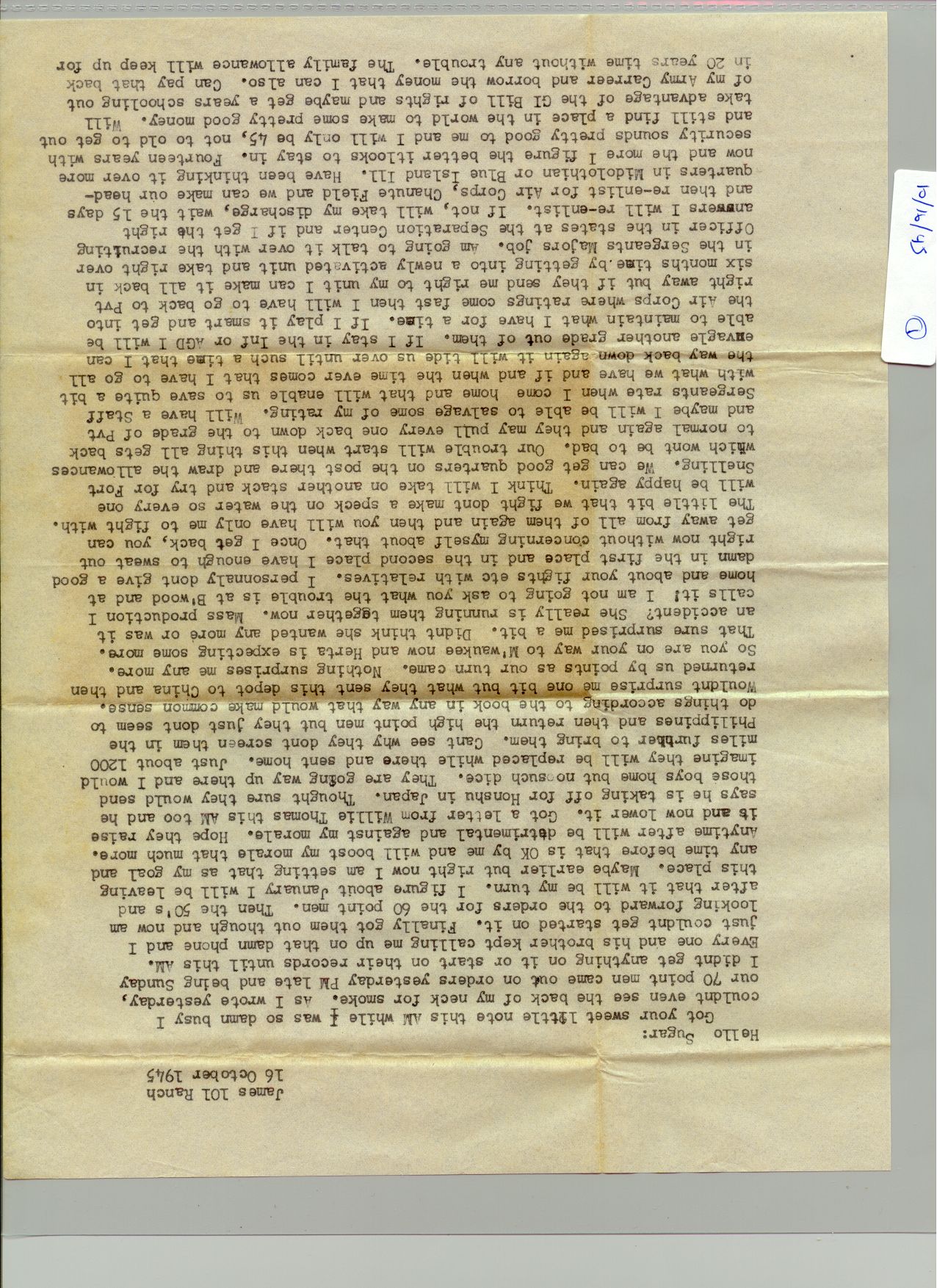 1 October 1945 - 31 October 1945