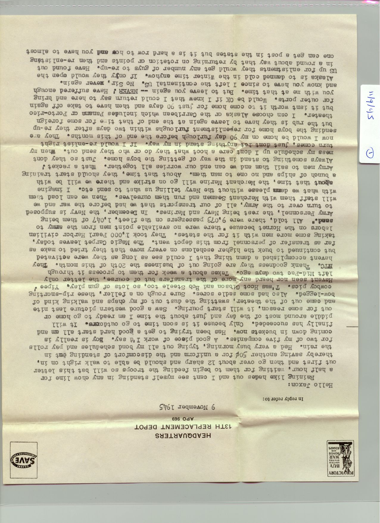 1 November 1945 - 31 November 1945